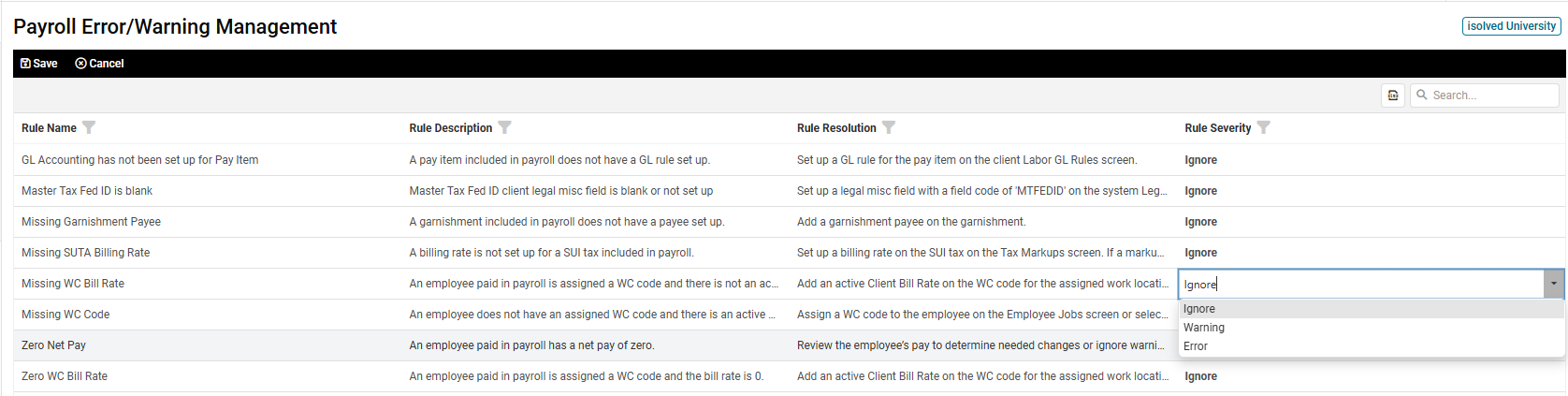 Refer to the 11.15 - PEO - Payroll Error_Warning Management Update screenshot in the “v11.15 isolved Newsletter and Content.zip” file attached to this release.