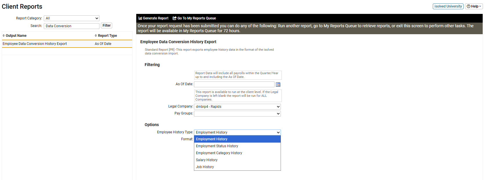 The “Employee Data Conversion History Export” has been updated. The new version includes new export options for Salary History and Job History. This helps users easily move employees from one legal company to another with full history, including salary and job data.