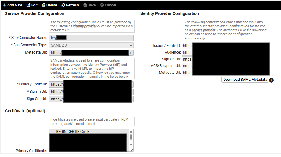 New: SSO Setup Page "Admin SAML Connector Setup"